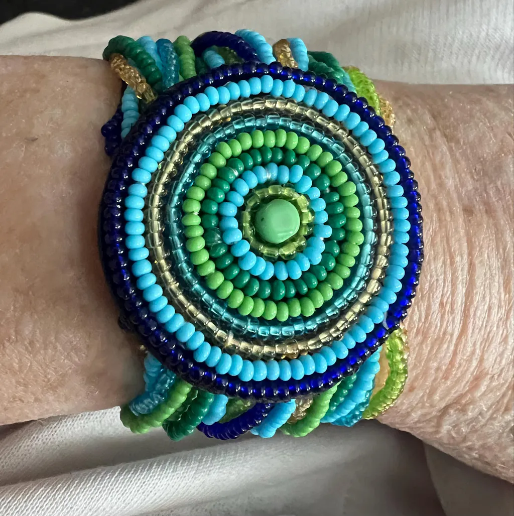 Wow, what a fabulous bracelet ... it really makes an impression and has received lots of comments ... the beadwork and leather quality is top notch ...
